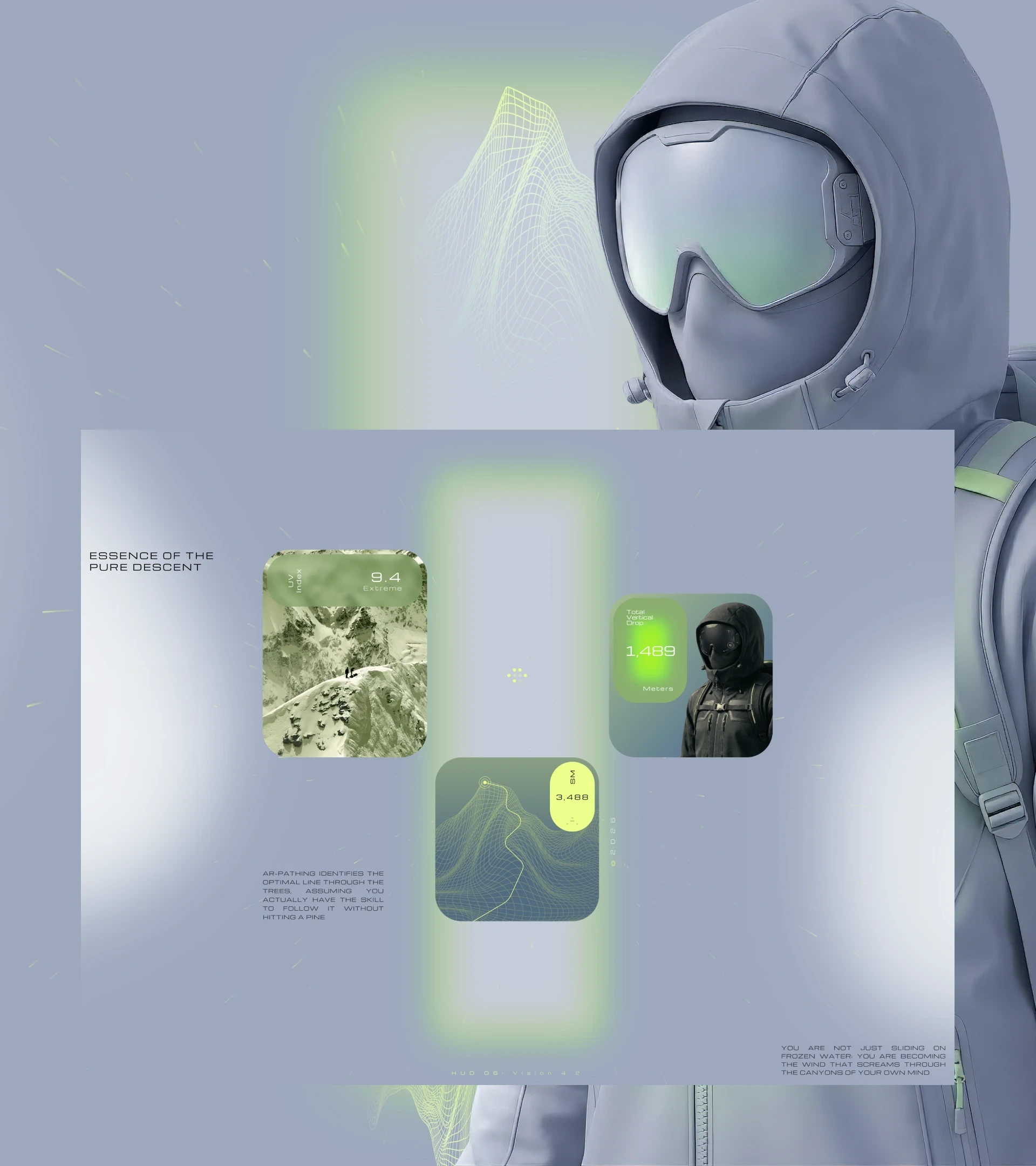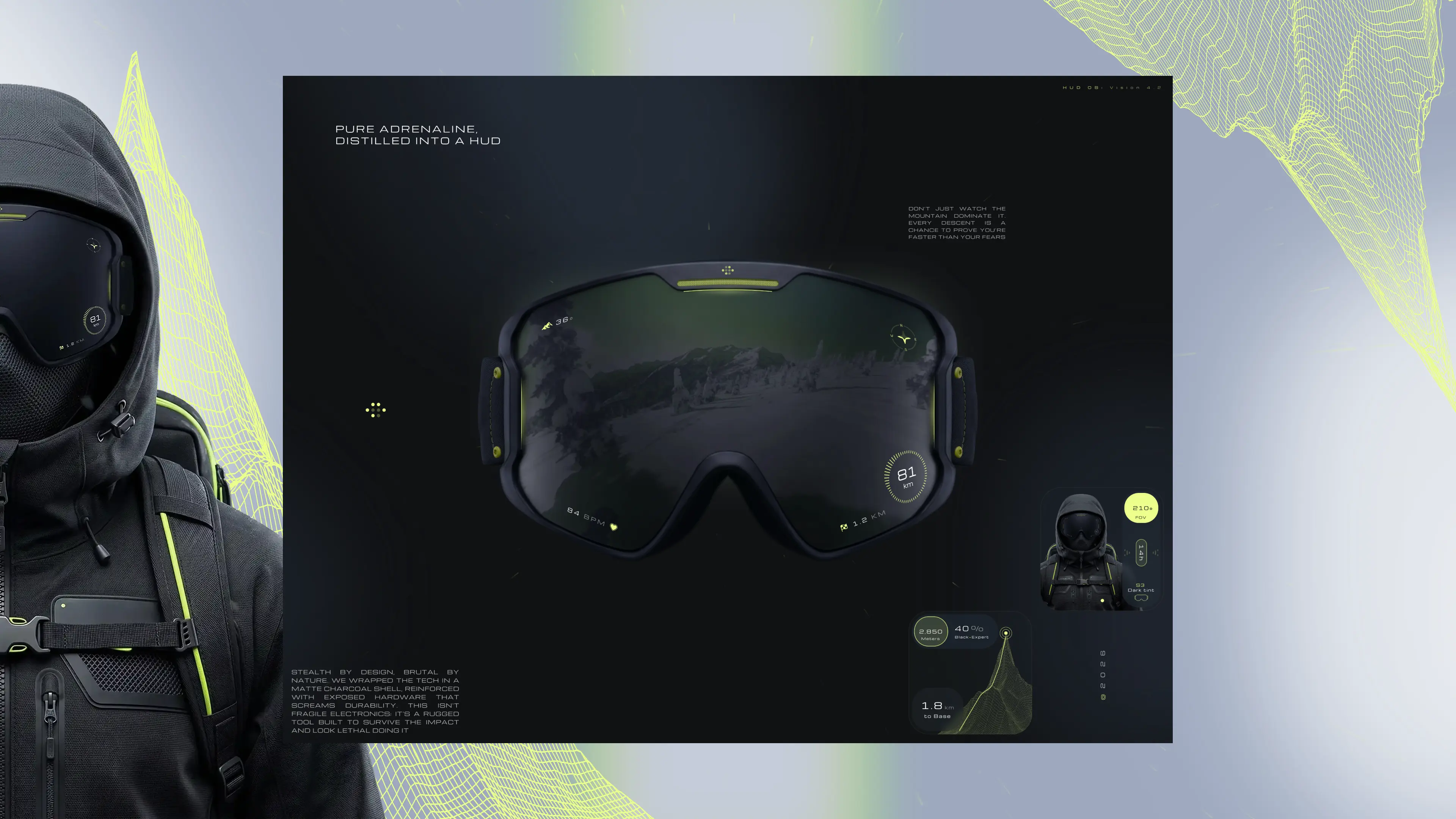Pure adrenaline, distilled into a HUD. This next-gen AR goggles concept is built for those who refuse to slow down. The primary objective: feed the rider critical data without cluttering their field of vision. It’s a fusion of stealth aesthetics, a matte charcoal frame, and an interface that works with your instincts, not against them